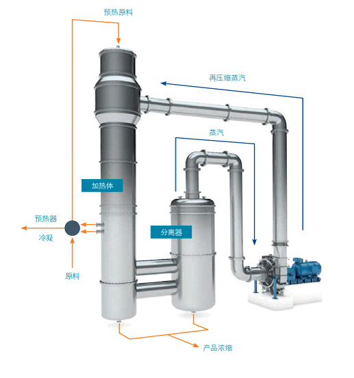 MVR (機械式蒸汽再壓縮) 是目前節能的蒸發技術。
